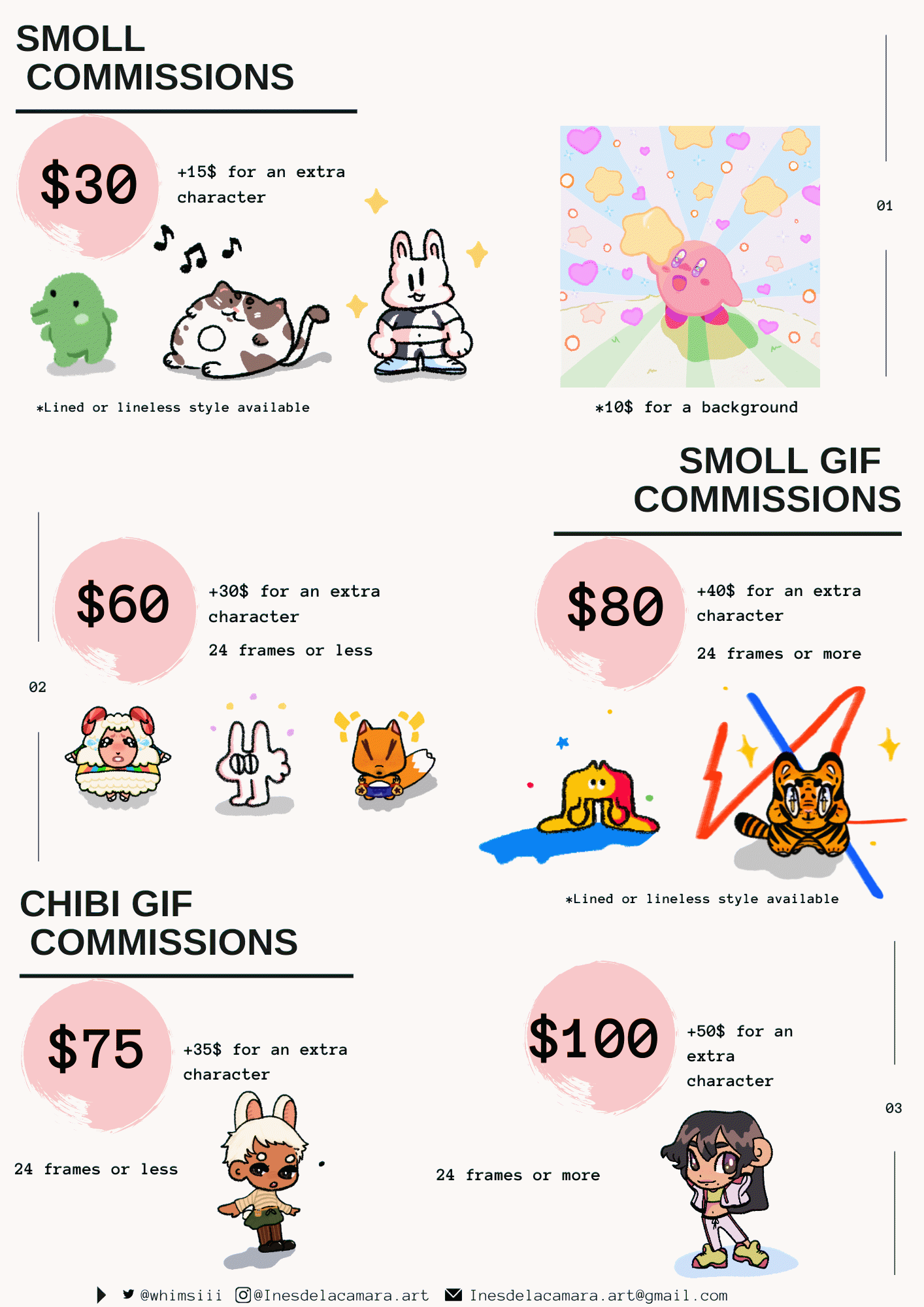 smoll commissions: 1000 x 1000 png or gif. (size of png/gif can be discussed. This is my default size when working on these illustrations/gifs)
